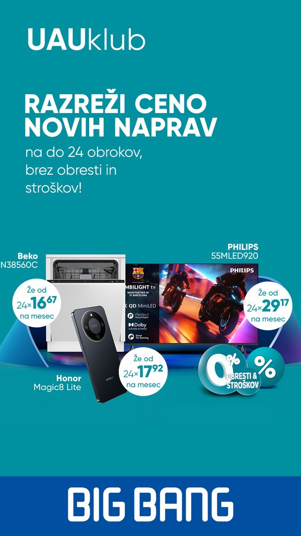 Razreži ceno bele tehnike, televizorjev, izdelkov za osebno nego, malih hišnih aparatov, prenosnikov in mobilnih telefonov na do 24 obrokov, brez…
